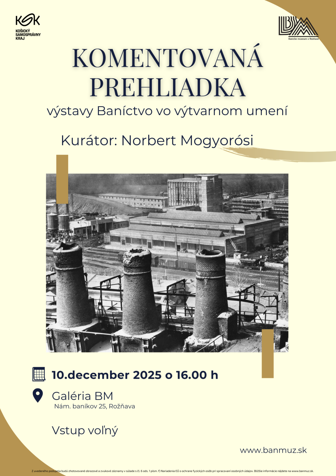 Komentovaná prehliadka sa uskutoční 10. decembra 2025 (streda) o 16.00 hod. v priestoroch Galérie Baníckeho múzea v Rožňave. Vstup na podujatie je voľný.