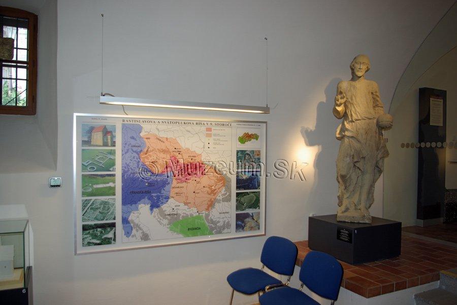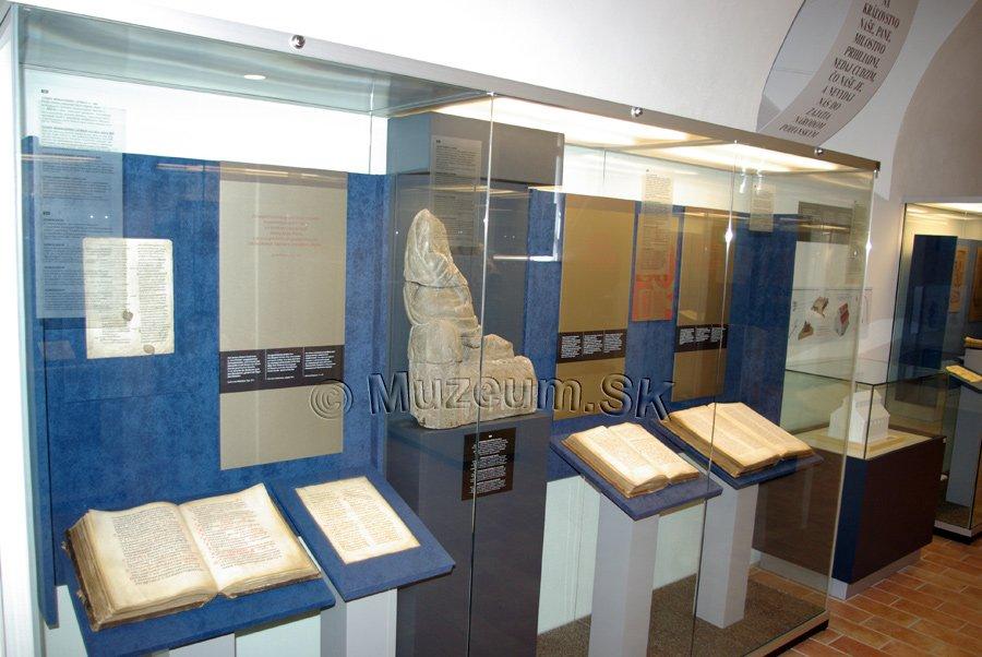 V prvej časti múzea si verejnosť môže pozrieť faksimile úryvkov spisu O obrátení Bavorov a Korutancov, ukážku z buly Industriae tuae, hlaholské Kyjevské listy či cyrilikou napísané Životy sv. Konštantína-Cyrila a sv. Metoda. Nechýba ani verná kópia Nitrianskeho evanjelistára, Zoborských listín a originály či modely niektorých archeologických nálezov, napr. pyxidy z Čiernych Klačian, hrivien a zvonu z Bojnej.