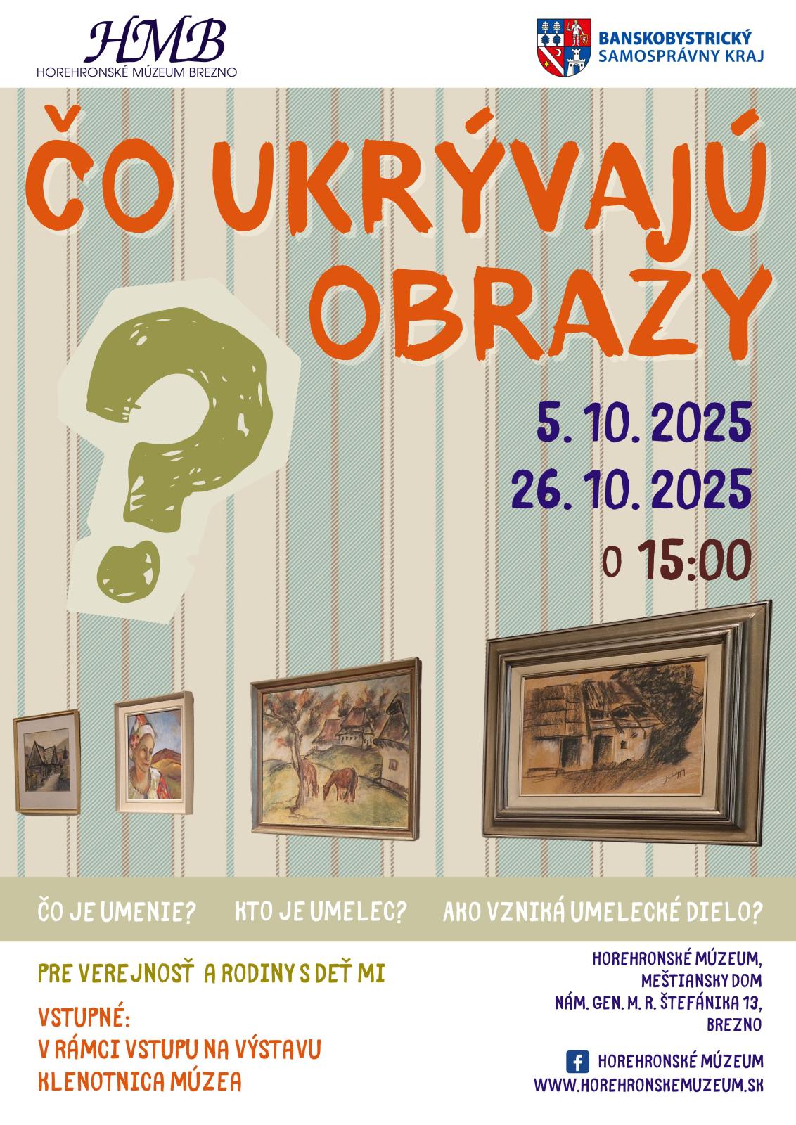 Horehronské múzeum pozýva v rámci výstavy Klenotnica múzea na sprievodné podujatie pod názvom Čo ukrývajú obrazy?, ktoré sa uskutoční v dvoch termínoch – 5. októbra a 26. októbra 2025 o 15:00 hod. v priestoroch Meštianskeho domu. Ide o hravé a tvorivé podujatie zamerané na výtvarné umenie, počas ktorého budú mať návštevníci možnosť objavovať vystavené výtvarné diela netradičnou formou. Zároveň sa dozvedia odpovede na základné otázky: Čo je umenie? Kto je umelec? Ako vzniká umelecké dielo?