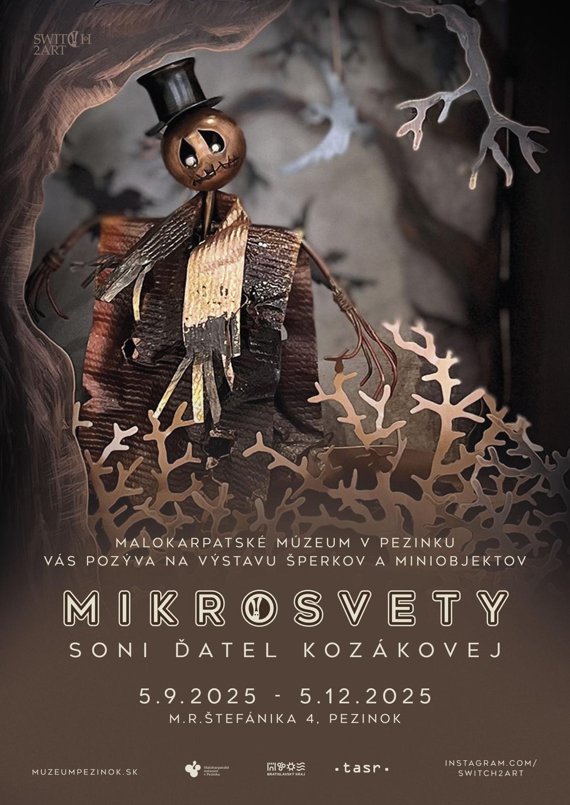 Malokarpatské múzeum v Pezinku pozýva na unikátnu výstavu Mikrosvety, prezentáciu autorských šperkov a objektov Soni Ďateľ Kozákovej. Výstava ponúka zážitok, ktorý presahuje tradičné vnímanie šperku – každý kúsok rozpráva príbeh a vyzýva diváka k interakcii a dotyku.