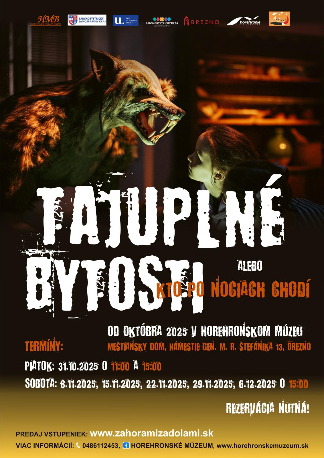 Príďte spoznať tajuplné bytosti z horehronských poverových rozprávaní. Zimný cyklus bude v ponuke od 31. októbra do 6. decembra 2025. V týždni sú na objednávku vyhradené termíny pre školy, prípadne iné záujmové skupiny (4.11.2025 – 5.12.2025). Viac informácií a rezervácia na t.č. 048/6112453.