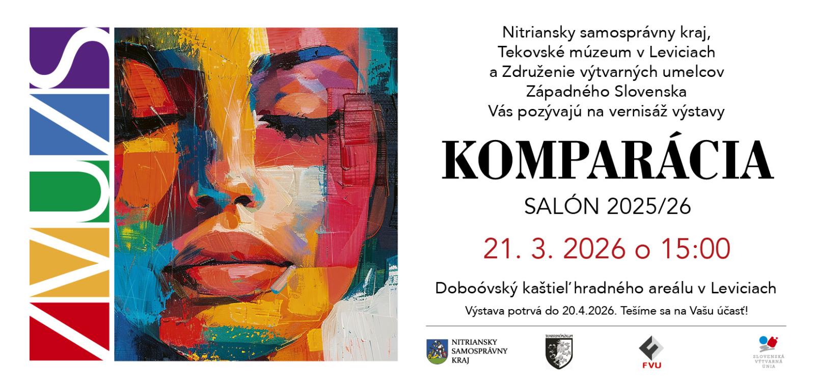 Tekovské múzeum v Leviciach a Združenie výtvarných umelcov Západného Slovenska si Vás dovoľujú srdečne pozvať na slávnostné otvorenie výstavy „Komparácia“ Salón 2025/2026, ktoré sa uskutoční 21. marca 2026 o 15.00 hod.