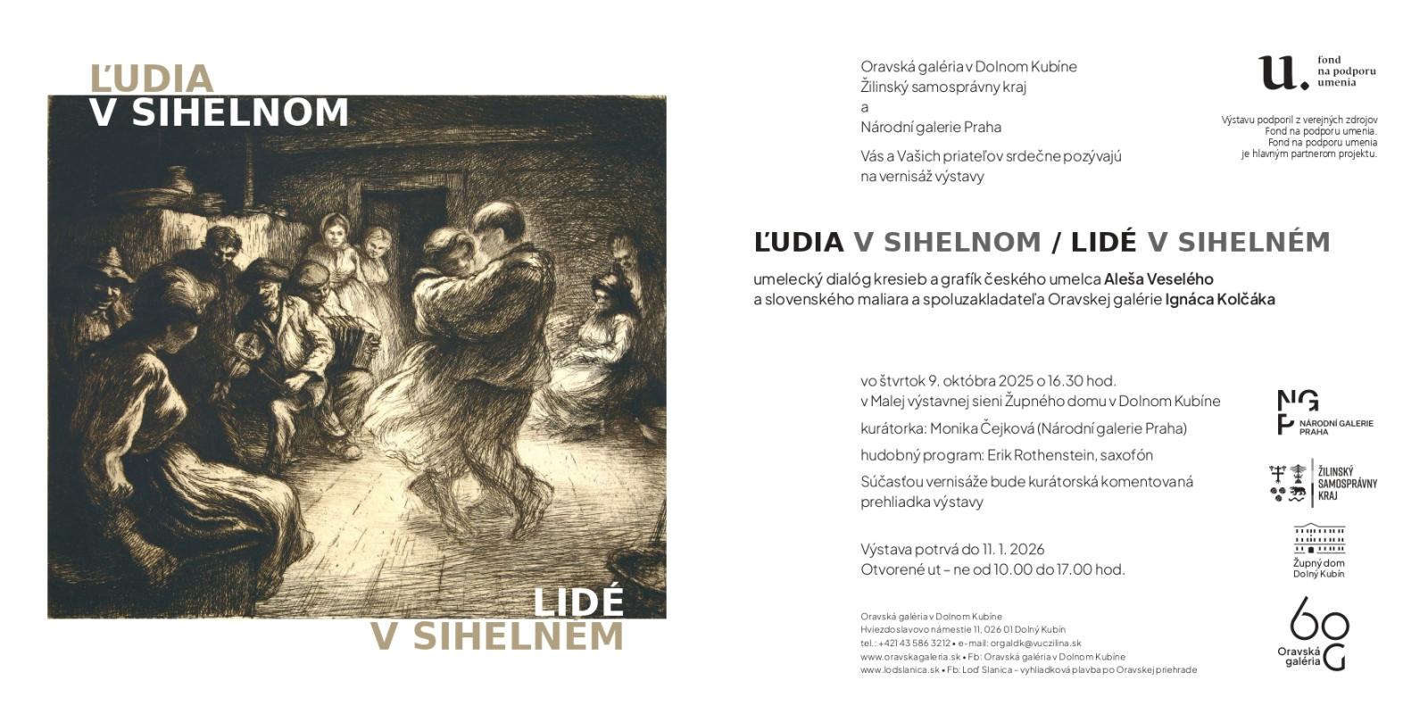 Výstava s názvom Ľudia v Sihelnom / Lidé v Sihelném, ktorá bude otvorená slávnostnou vernisážou dňa 9. októbra o 16.30 hod. je umeleckým dialógom kresieb a grafík českého umelca Aleša Veselého a slovenského maliara a spoluzakladateľa Oravskej galérie Ignáca Kolčáka. Autori sa spoznali v päťdesiatych rokoch počas štúdia na Akadémii výtvarných umení v Prahe a čoskoro sa stali priateľmi. V roku 1953 pozval Kolčák Veselého do svojej rodnej obce Sihelné na slovensko-poľských hraniciach